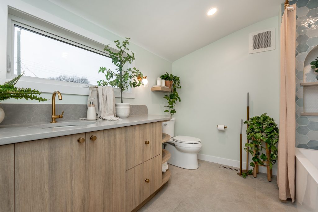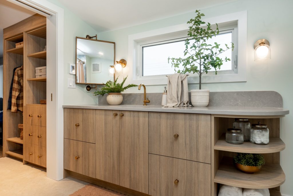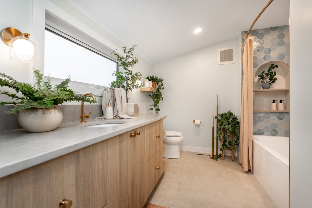 This Braemar residential bathroom lighting project, completed in collaboration with Grindstone Renovations, showcases thoughtfully layered lighting that enhances both function and design. Warm wall sconces provide balanced task lighting at the vanity, while ambient lighting creates a soft, inviting atmosphere throughout the space. The lighting complements the custom wood vanity, quartz surfaces, and clean architectural lines, highlighting textures and finishes without overpowering the room. Designed with everyday living in mind, this project demonstrates how well-planned bathroom lighting can elevate comfort, usability, and overall visual appeal in a modern family home.