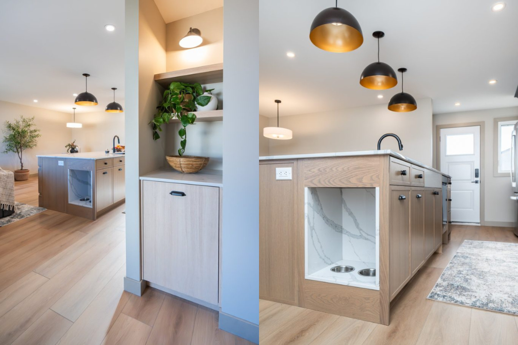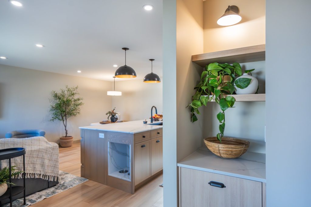 Modern kitchen & bath, elevated by Robinson Lighting for the Fritzgerald project with Grindstone Renovations—layered light, cozy glow, clean lines.