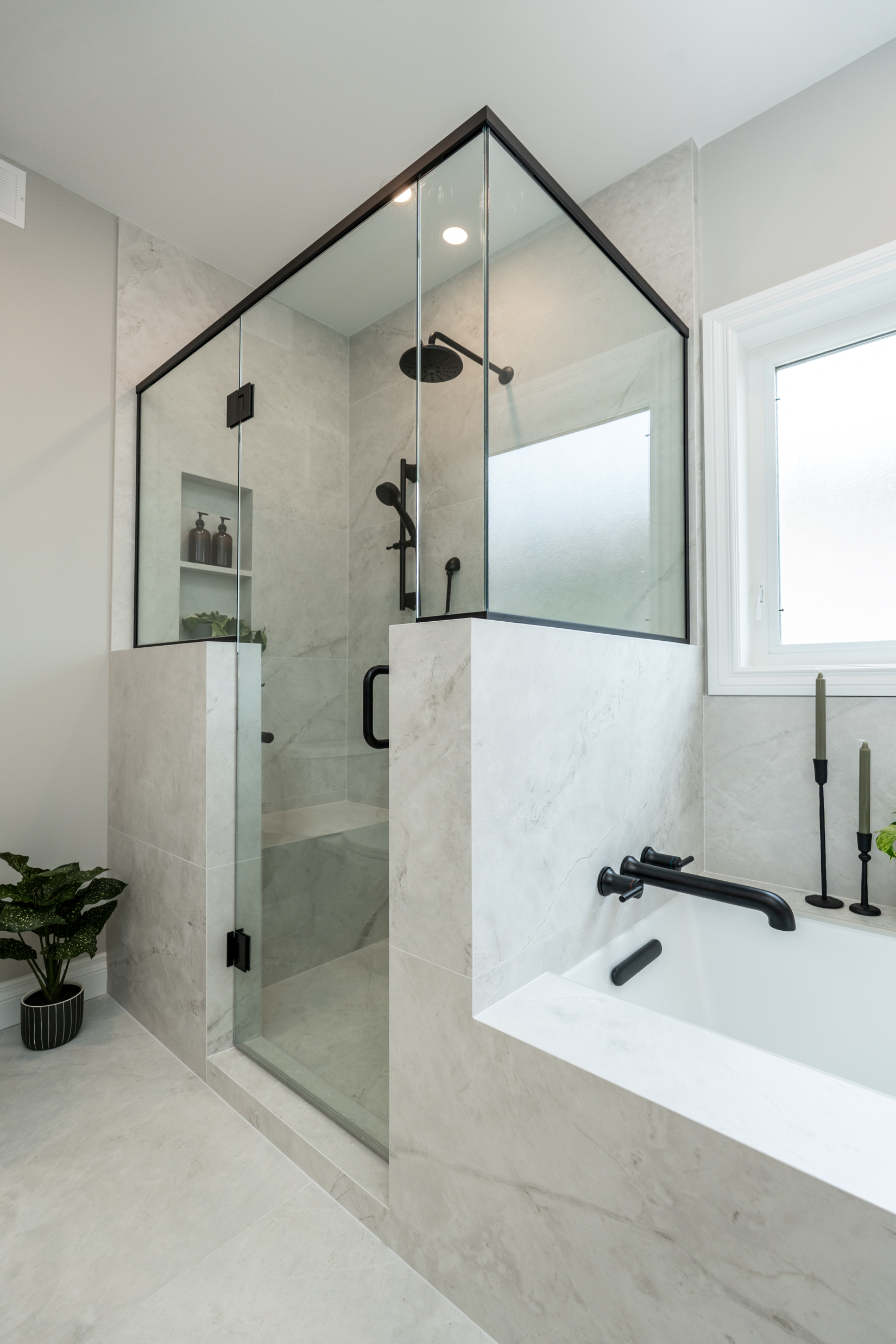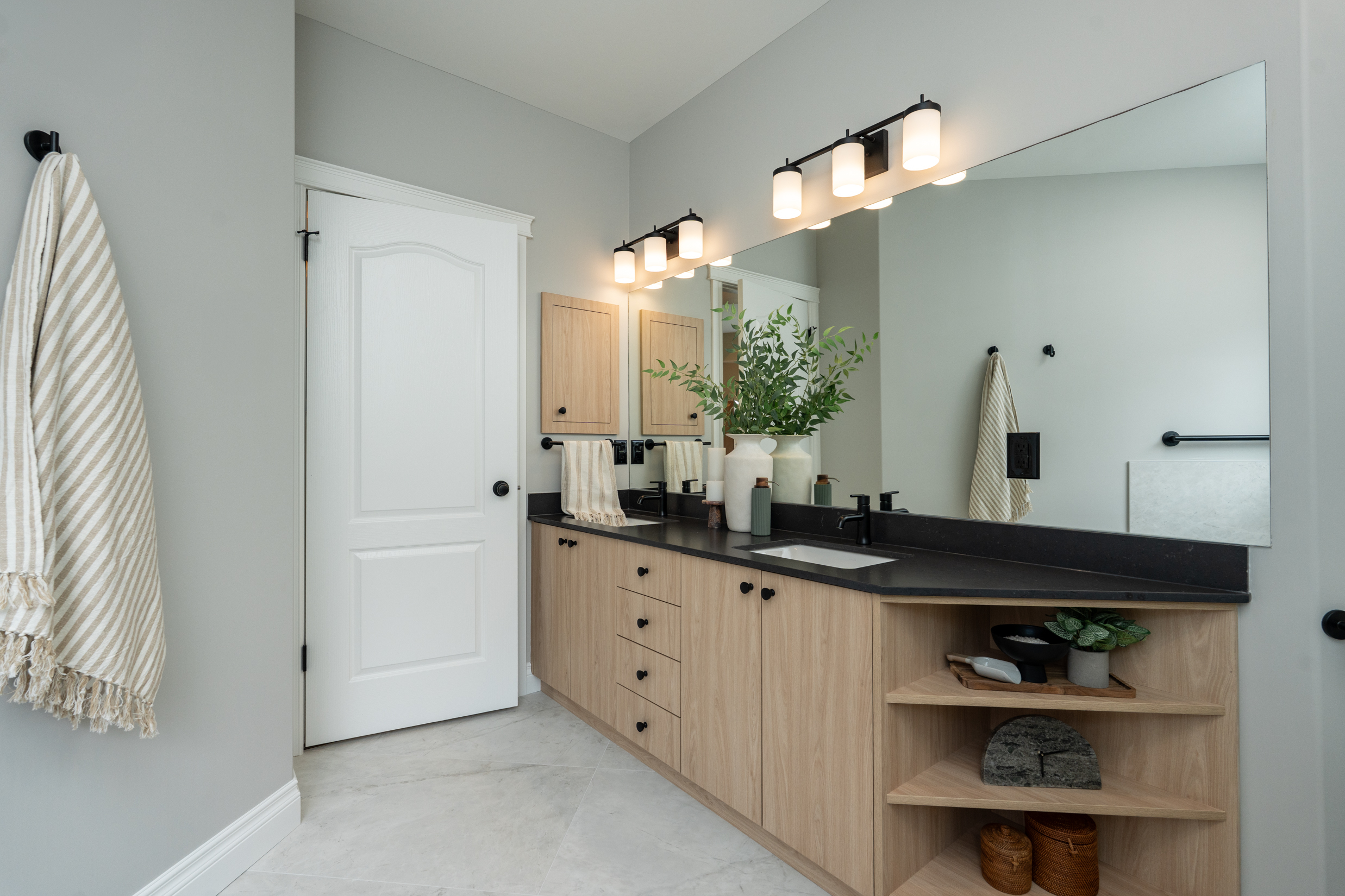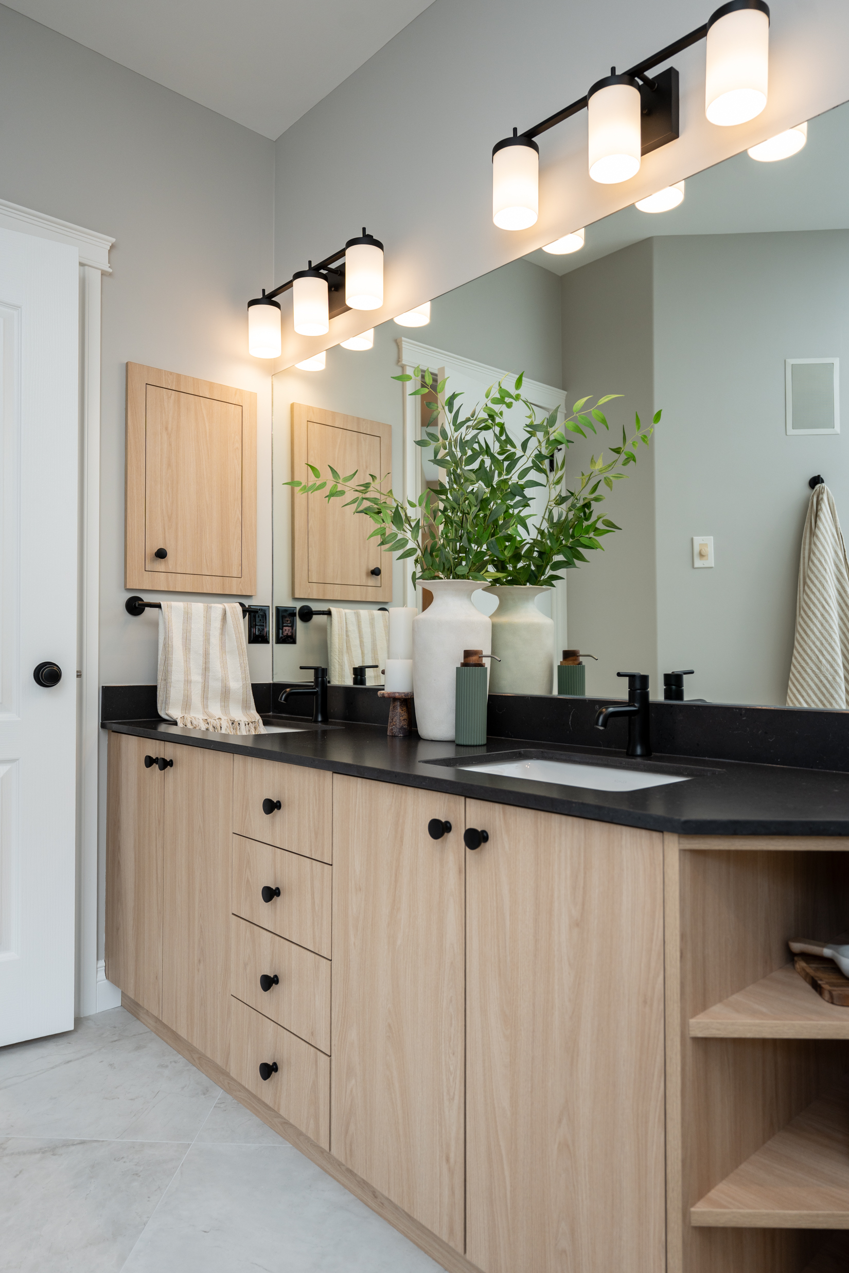 The Georgetown Lighting Project Winnipeg showcases a modern residential lighting plan designed to enhance functionality and architectural detail. This Winnipeg home features layered bathroom lighting, including vanity fixtures, recessed ceiling lights, and ambient shower illumination curated by Robinson Lighting Centre.