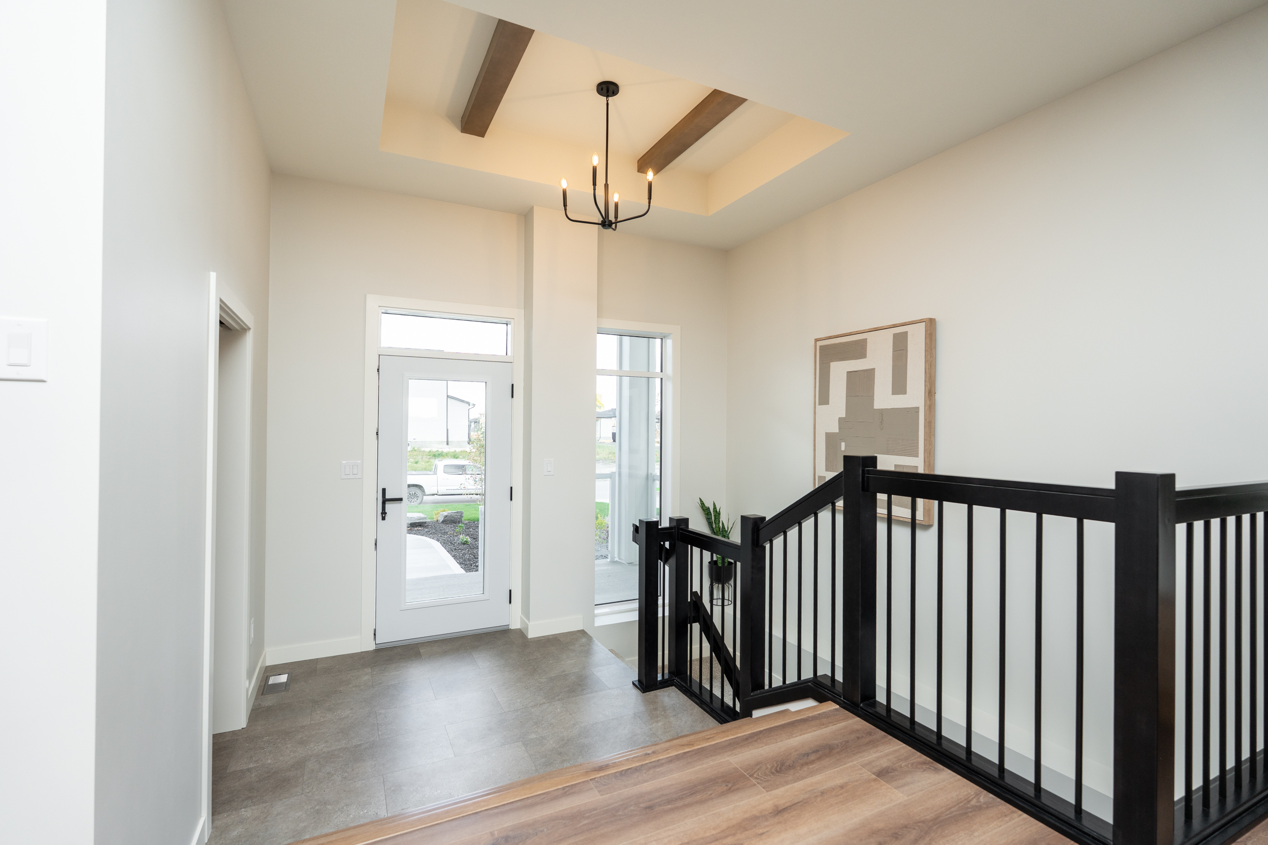 Located at the Woodland Way neighbourhood in Winnipeg, this Schulz Homes residential lighting project highlights how thoughtful lighting design enhances both function and style. From modern kitchen pendant lighting to a welcoming entryway chandelier, Robinson Lighting worked alongside the builder to create a cohesive lighting plan throughout the home.